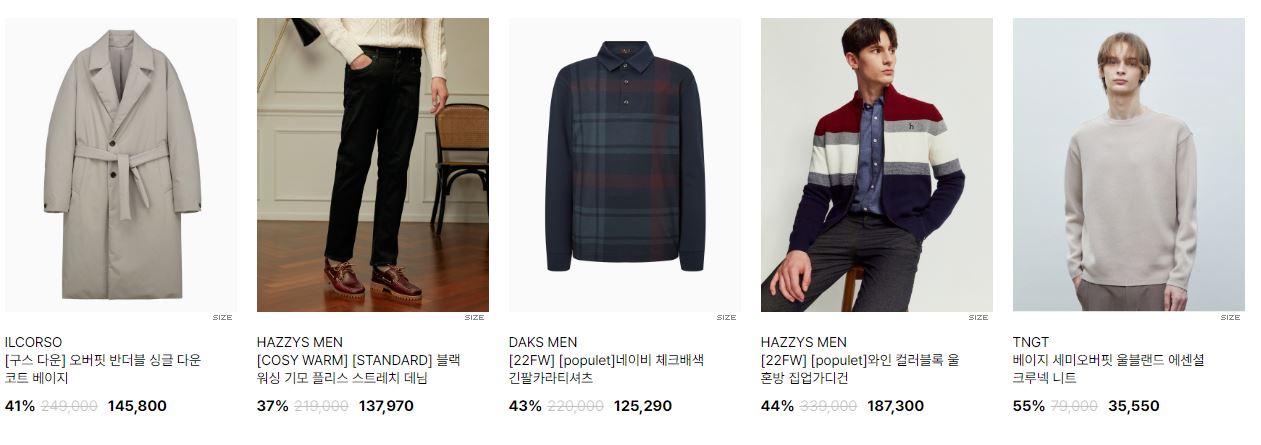 할인 품목 : 코트, 점퍼, 가방, 신발 등