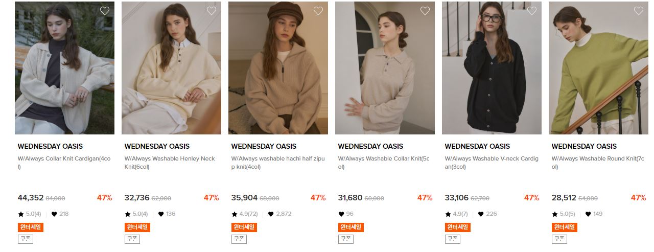 할인 품목 : 점퍼, 가디건, 니트 등