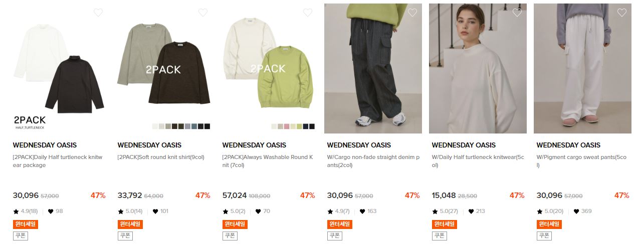 웬즈데이 오아시스 다양한 제품을 할인 판매하네요.