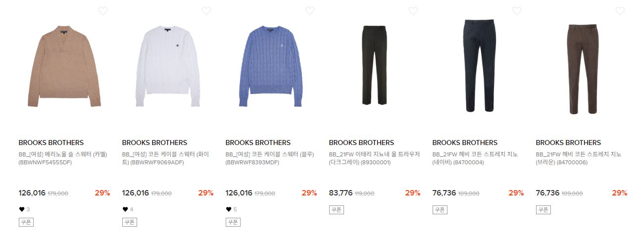 브룩스 브라더스 다양한 제품을 할인 판매하네요.