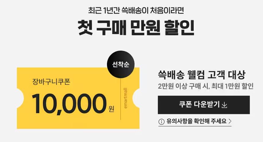 1년간 쓱배송이 처음이면 1만원 할인 쿠폰 증정