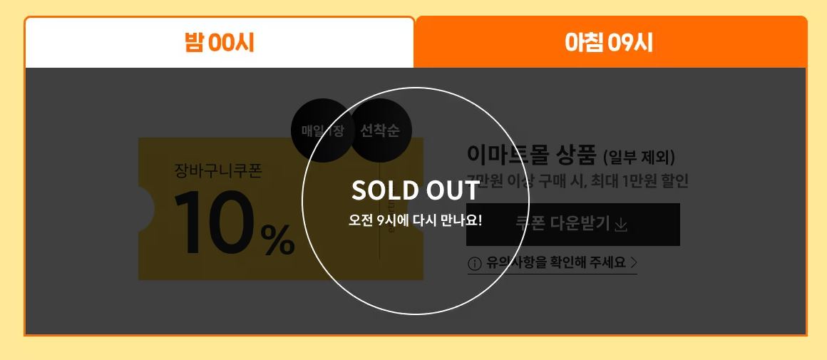 매일 밤 0시 / 아침 9시 10% 장바구니 쿠폰