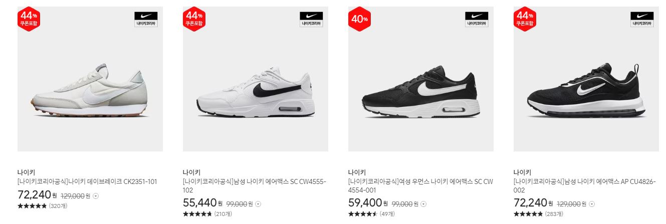 나이키 다양한 제품을 할인 판매하네요.