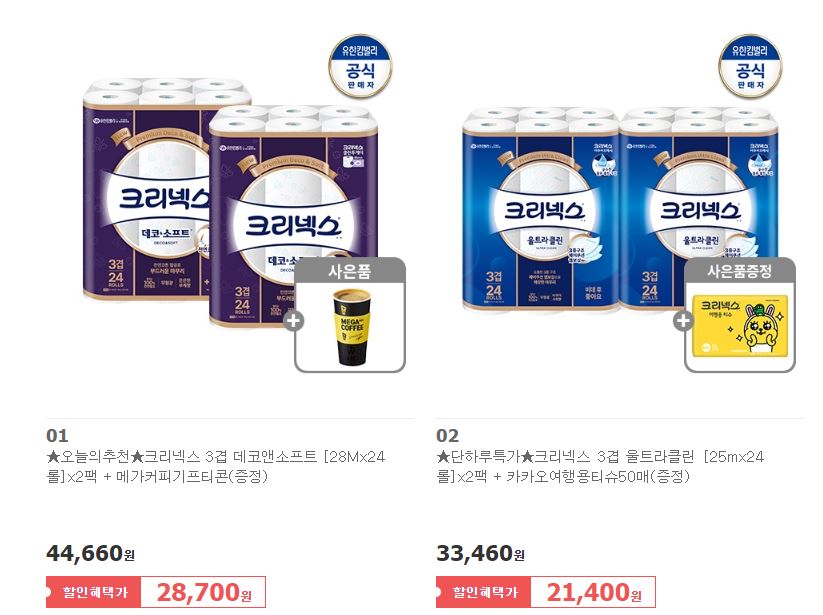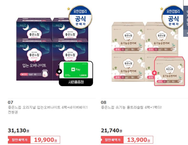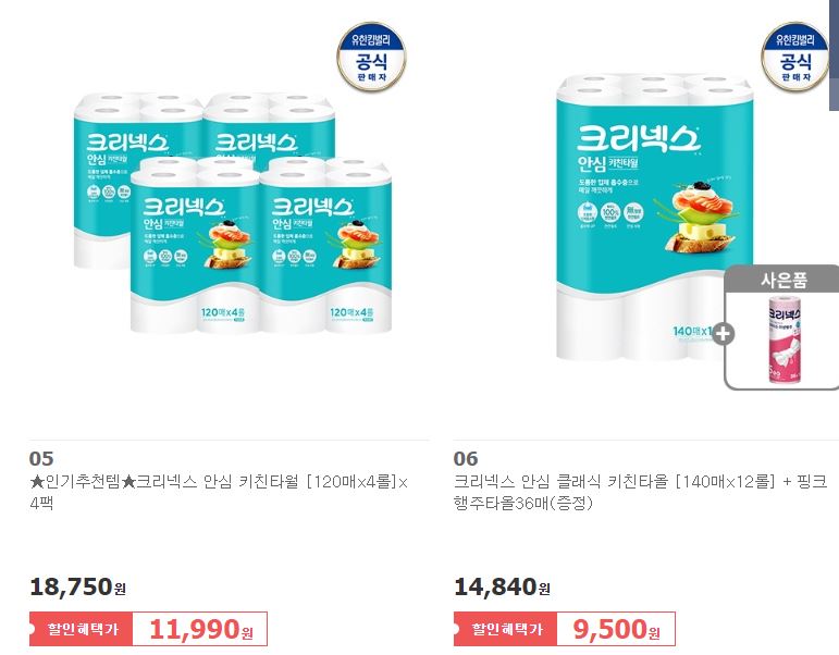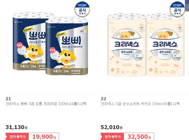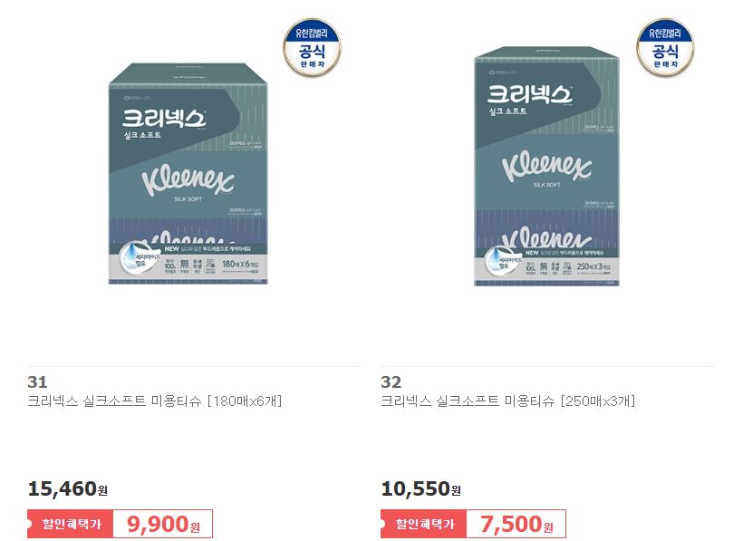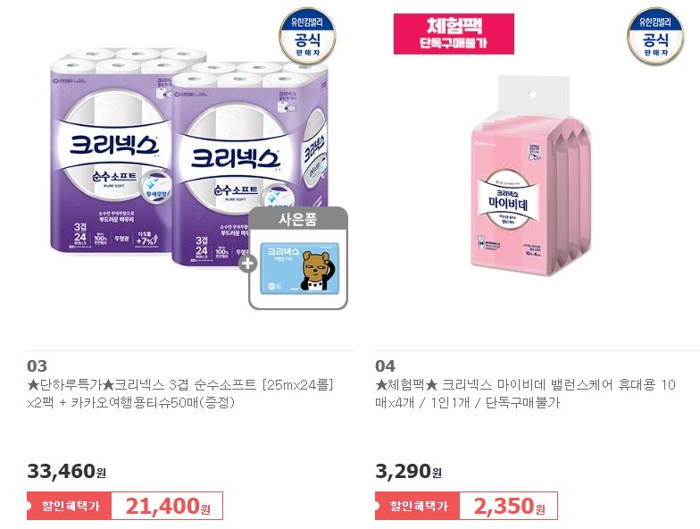 유한킴벌리 다양한 제품을 할인 판매하네요.