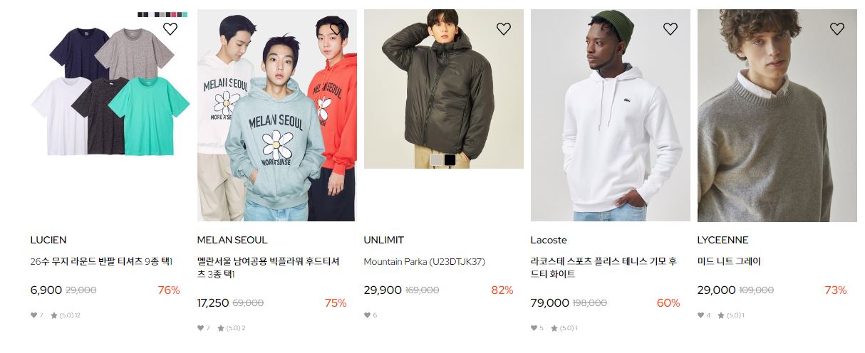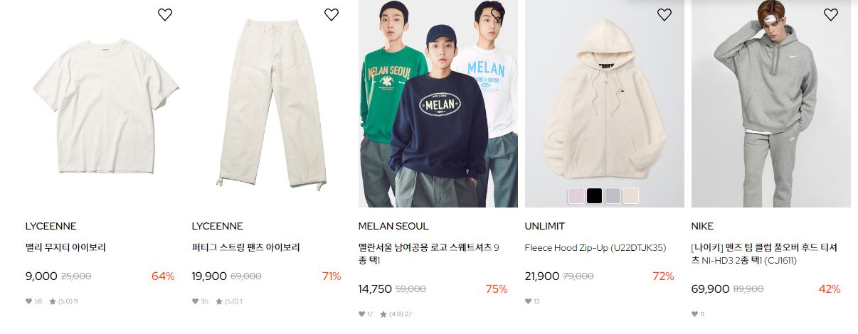 할인 품목 : 티셔츠, 팬츠, 운동화 등