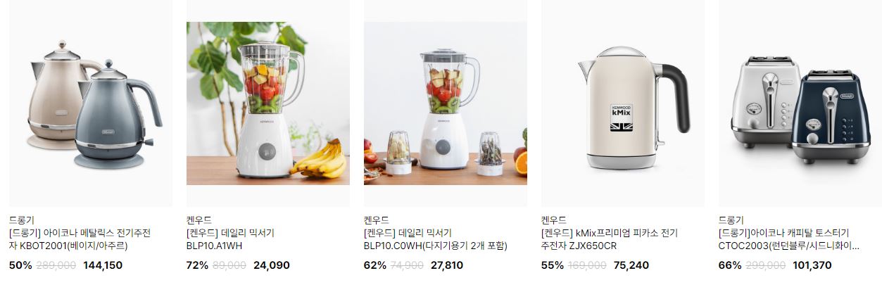 할인 품목 : 믹서기, 에스프레소머신, 식기 등