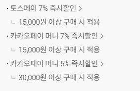 토스페이/카카오페이 머니 최대 7% 즉시 할인