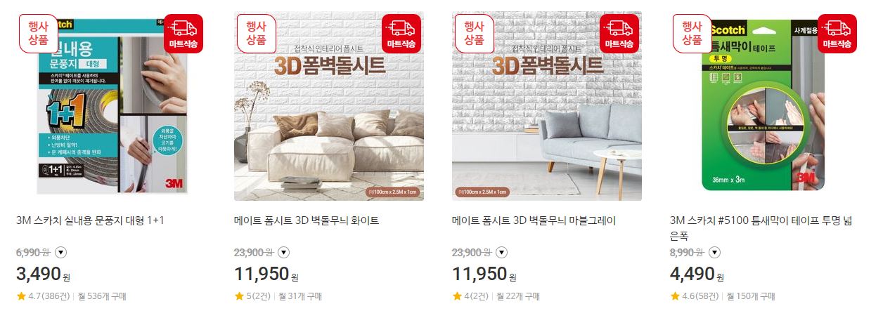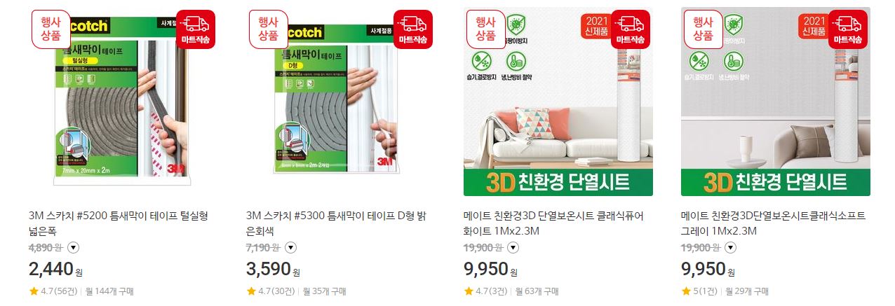 할인 품목 : 문풍지, 장갑, 모자, 침구류 등