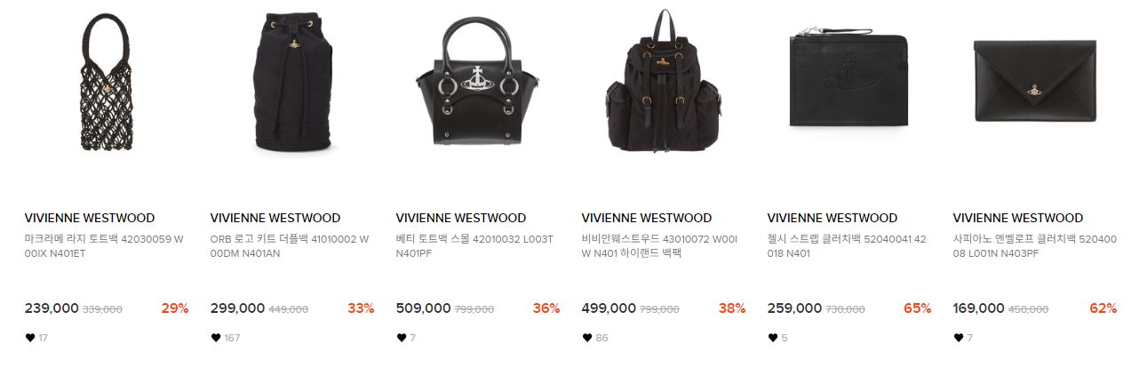 비비안 웨스트우드 다양한 제품을 할인 판매하네요.