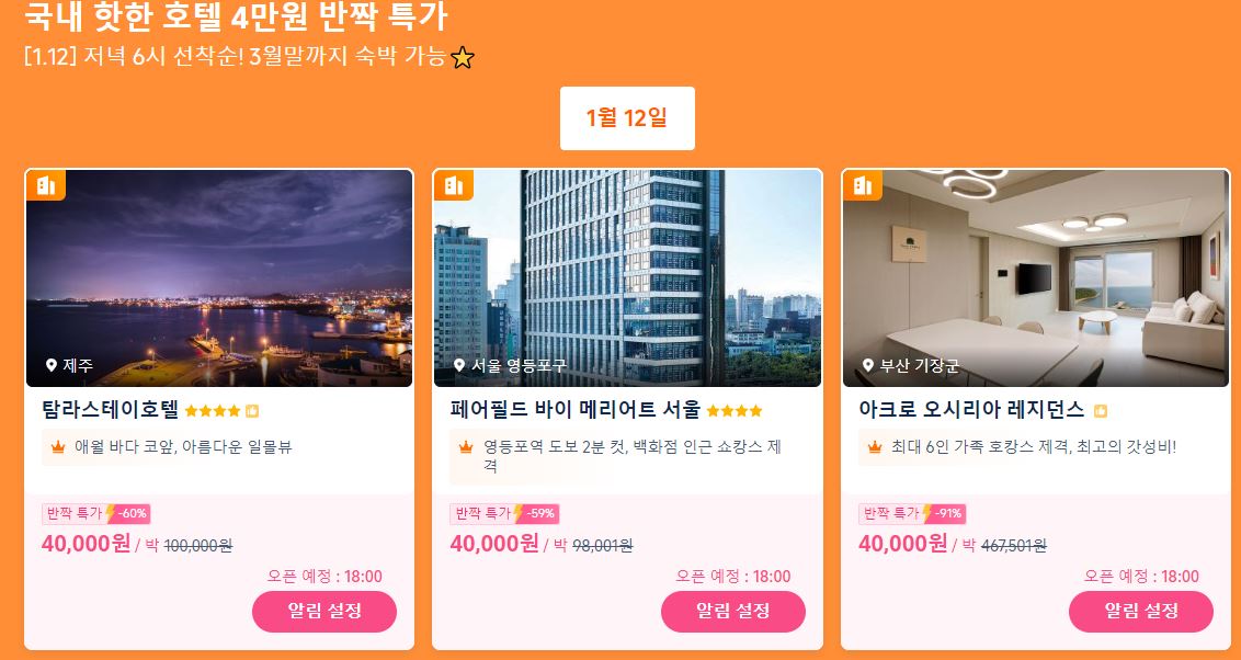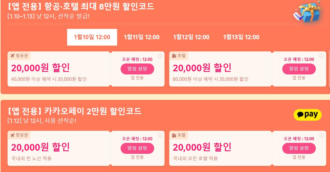 할인 품목 : 숙박, 항공권, 놀이공원 이용권 등