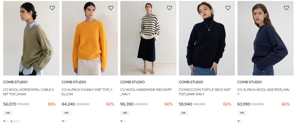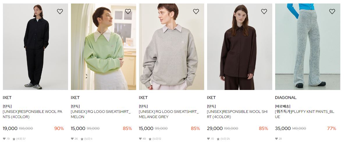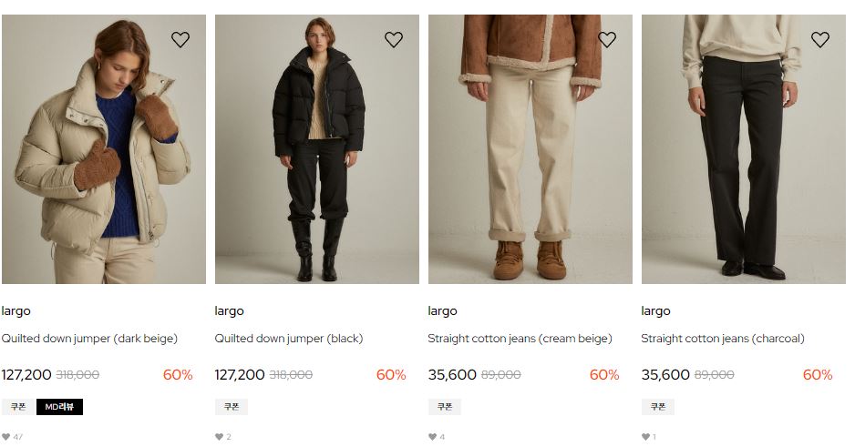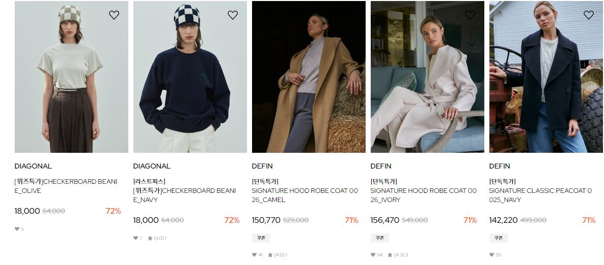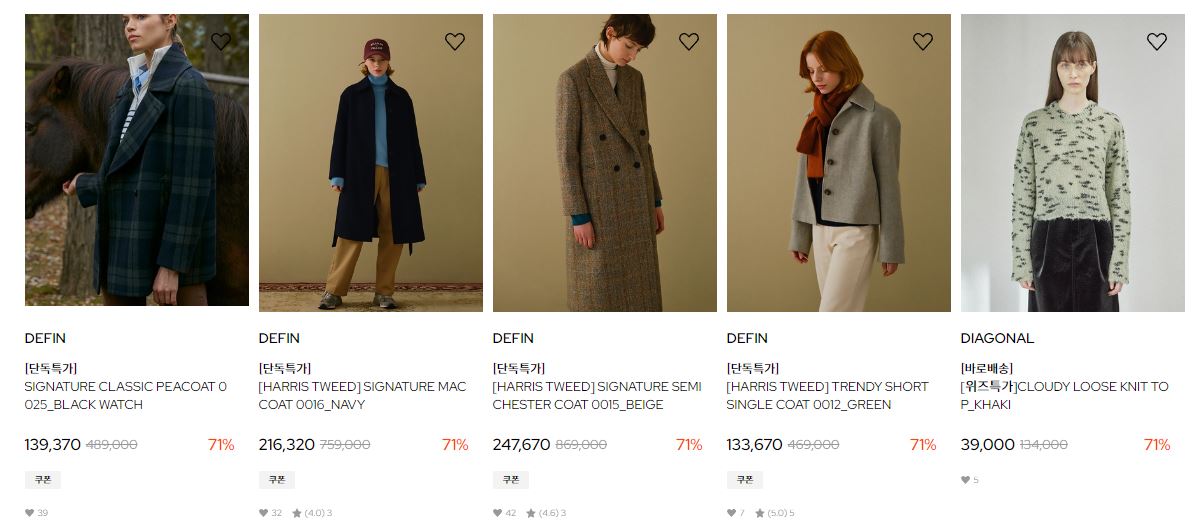 할인 품목 : 코트, 티셔츠, 팬츠 등