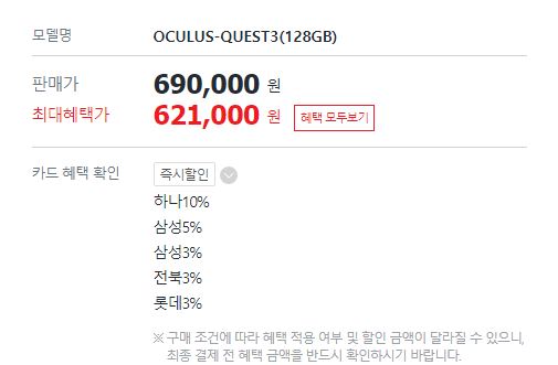 오큘러스 메타 퀘스트3 VR 헤드셋 할인 정보 [링크]