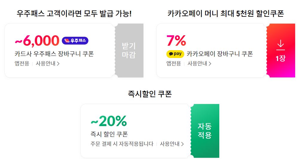 다양한 쿠폰 등