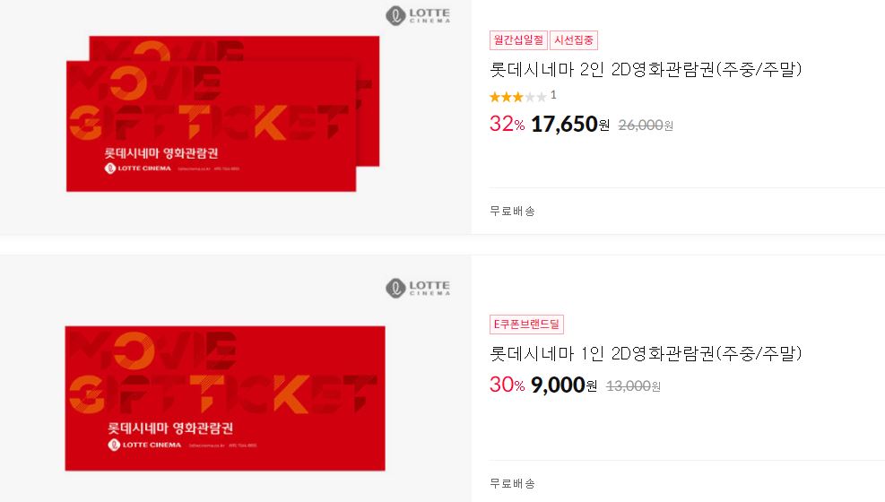 롯데시네마 다양한 제품을 할인 판매하네요.