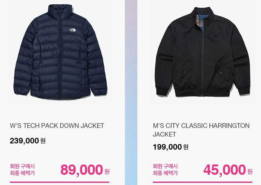 할인 품목 : 점퍼, 티셔츠, 팬츠 등