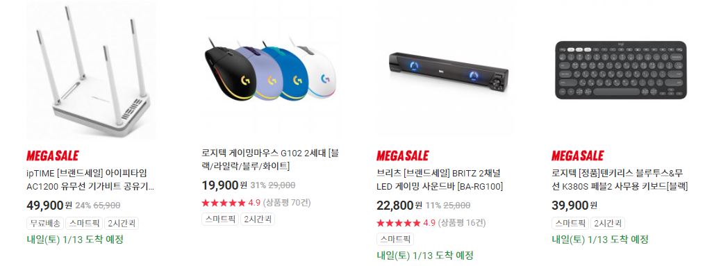 할인 품목 : 마우스, 노트북, 모니터 등