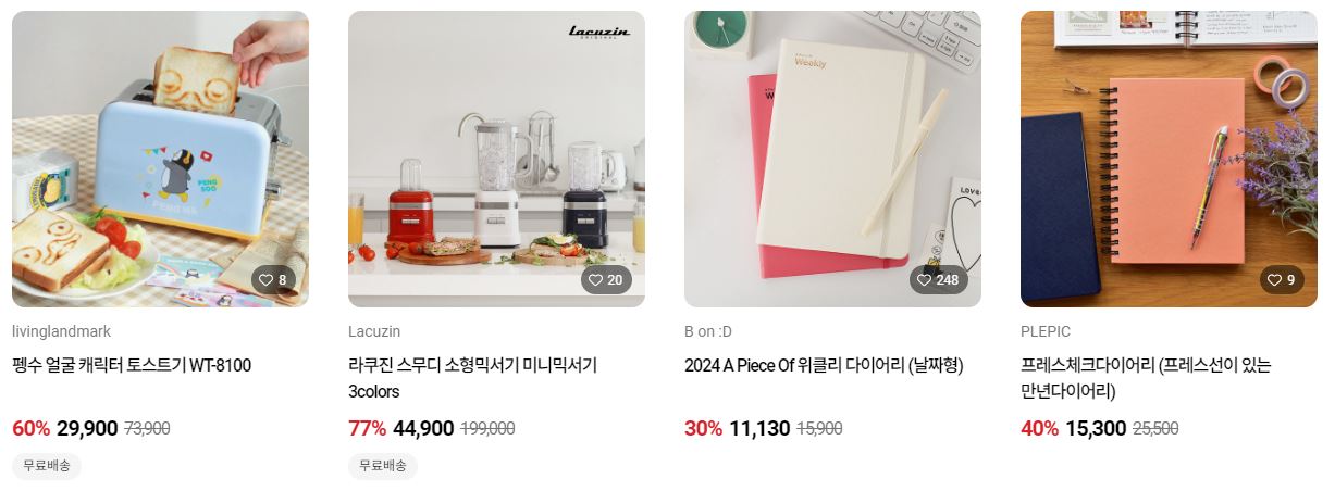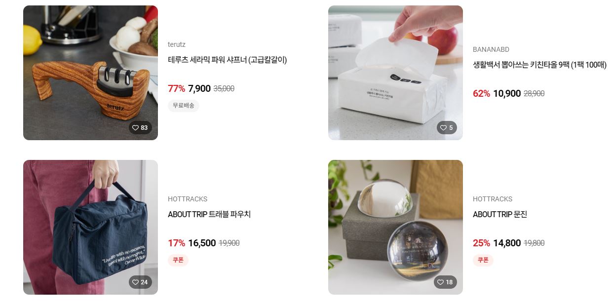 할인 품목 : 생활용품, 가전, 운동용품 등