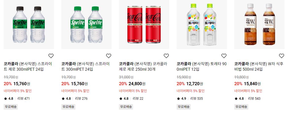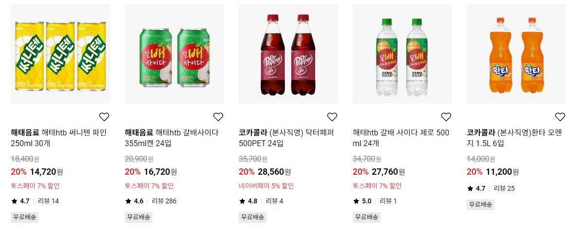 할인 품목 : 콜라, 커피 등