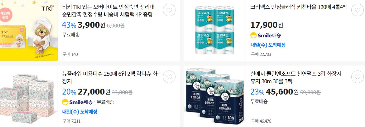 할인 품목 : 샴푸, 바디로션, 휴지 등