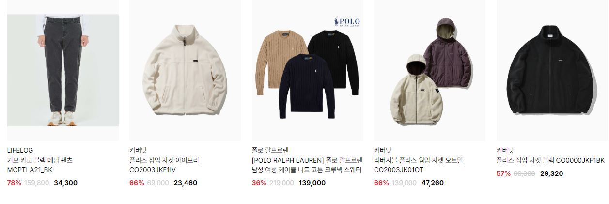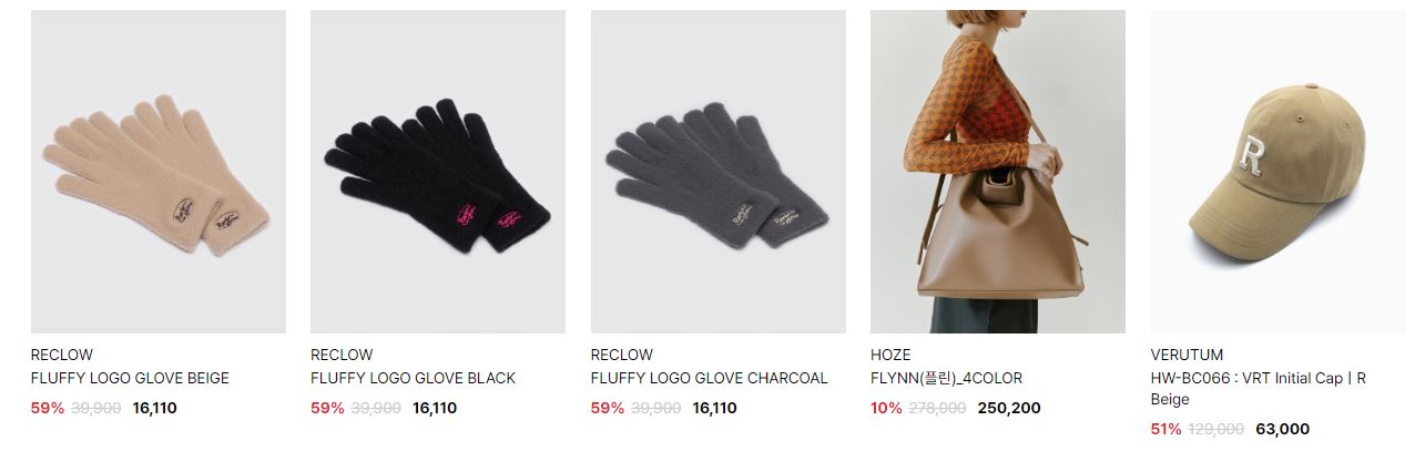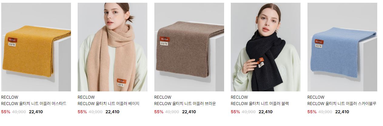 할인 품목 : 점퍼, 니트, 장갑, 머플러 등