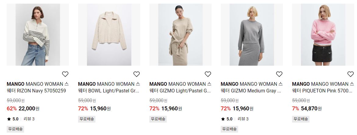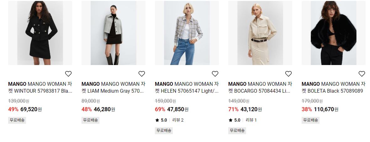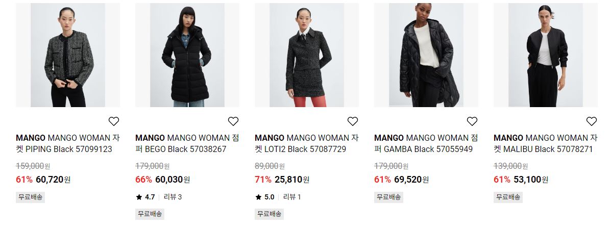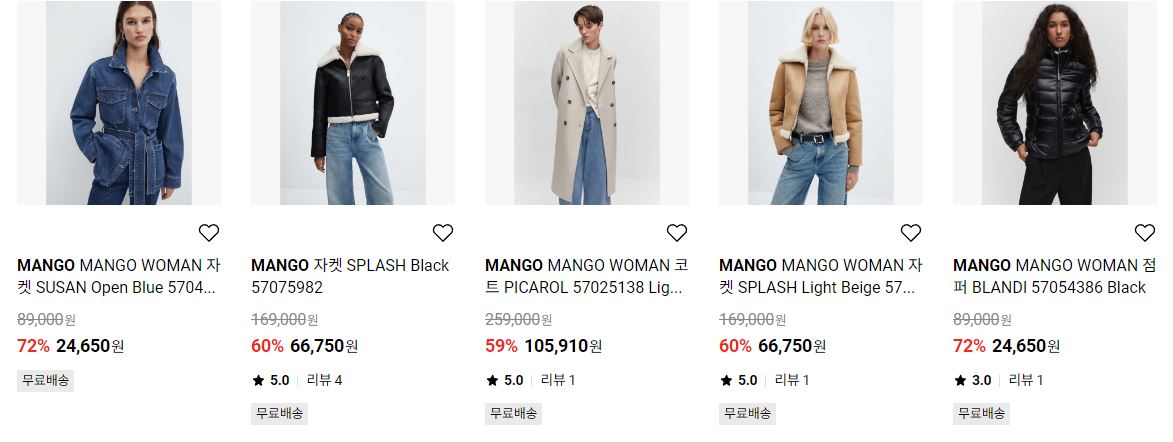 MANGO 다양한 제품을 할인 판매하네요.