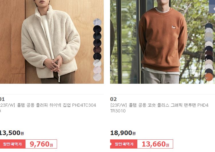 할인 품목 : 티셔츠, 점퍼, 코트 등