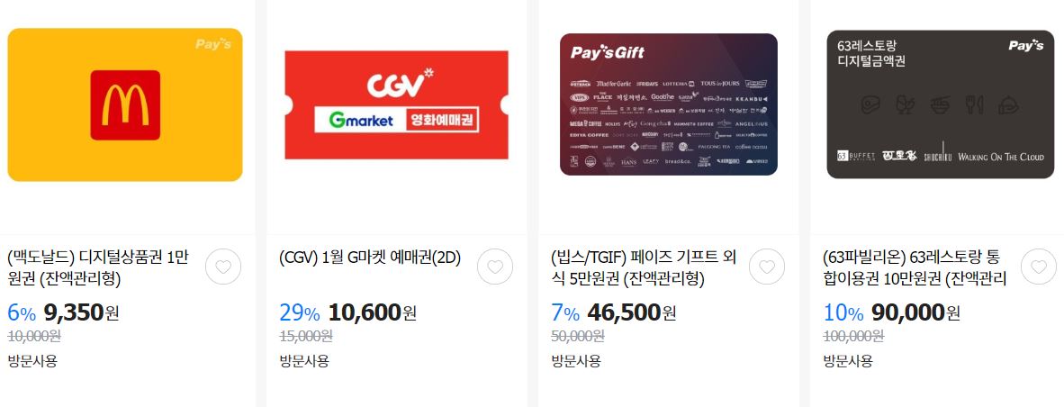 할인 브랜드 : 버거킹, 파스쿠찌 등