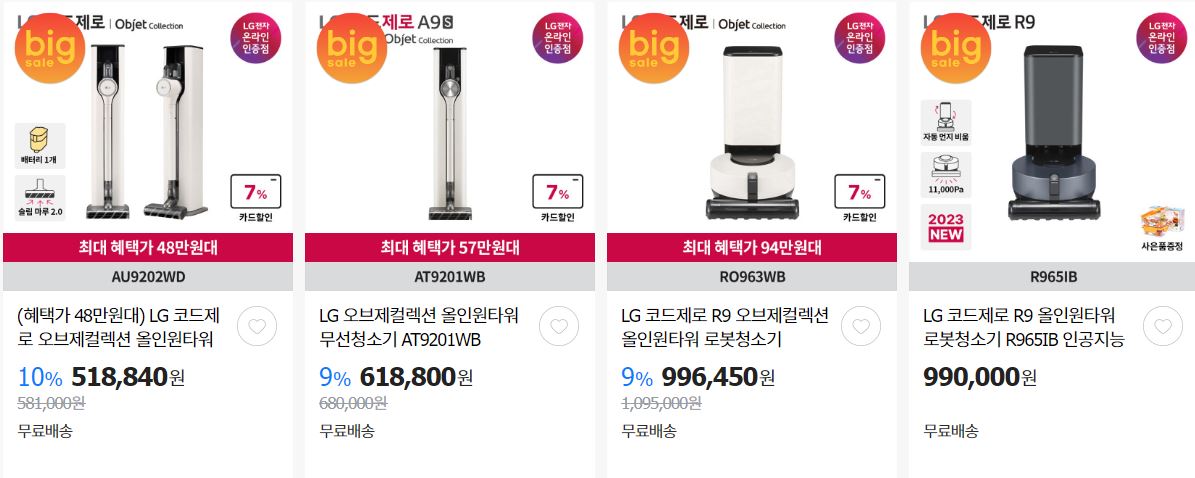 LG전자 다양한 제품을 할인 판매하네요.