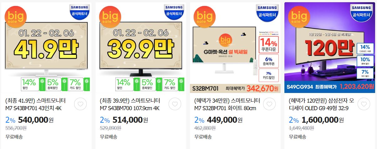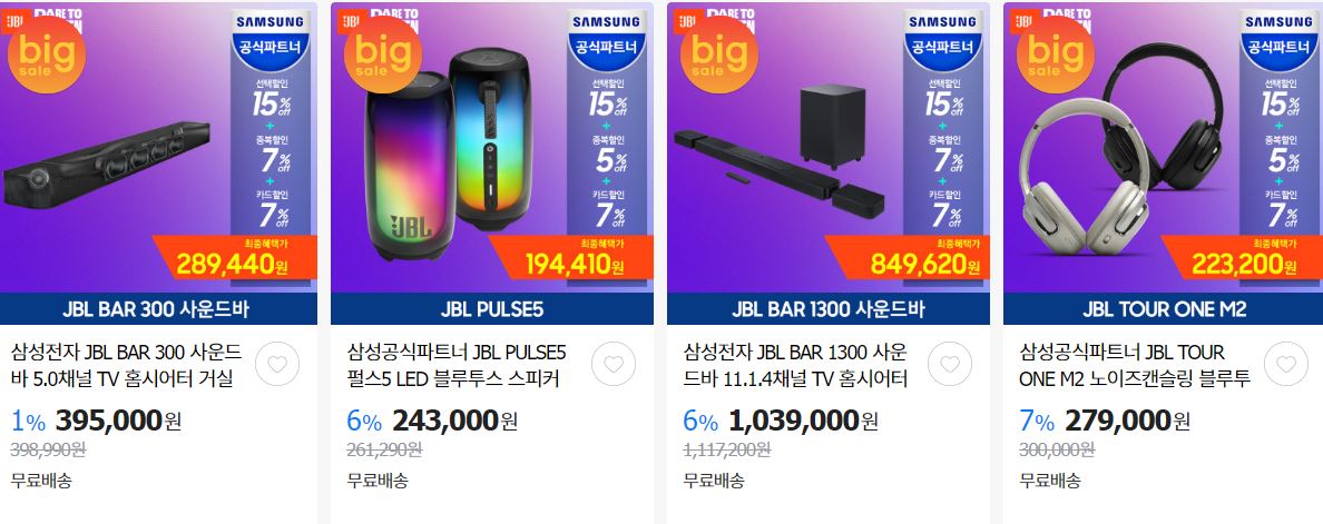 할인 품목 : 이어폰, 모니터, 사운드바 등