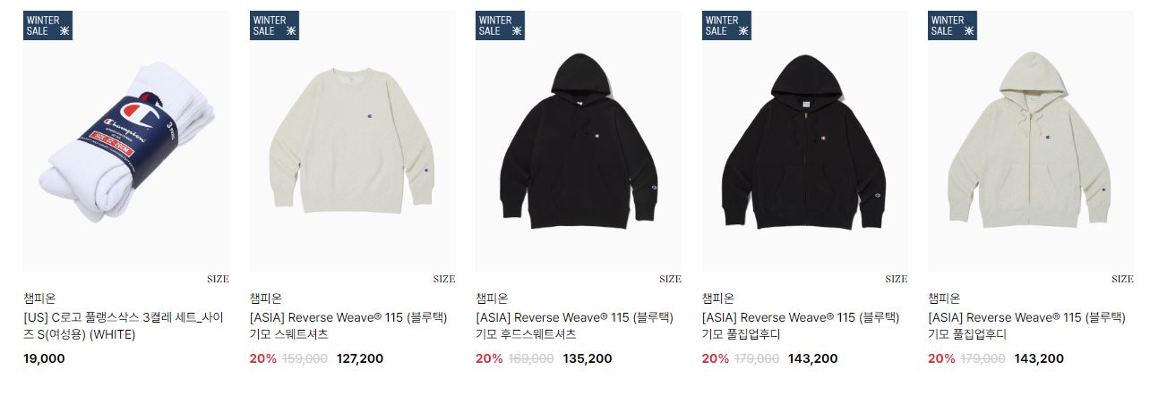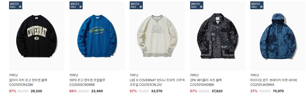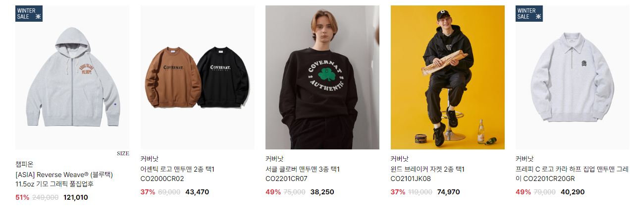 할인 품목 : 티셔츠, 점퍼 등