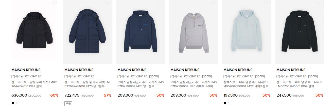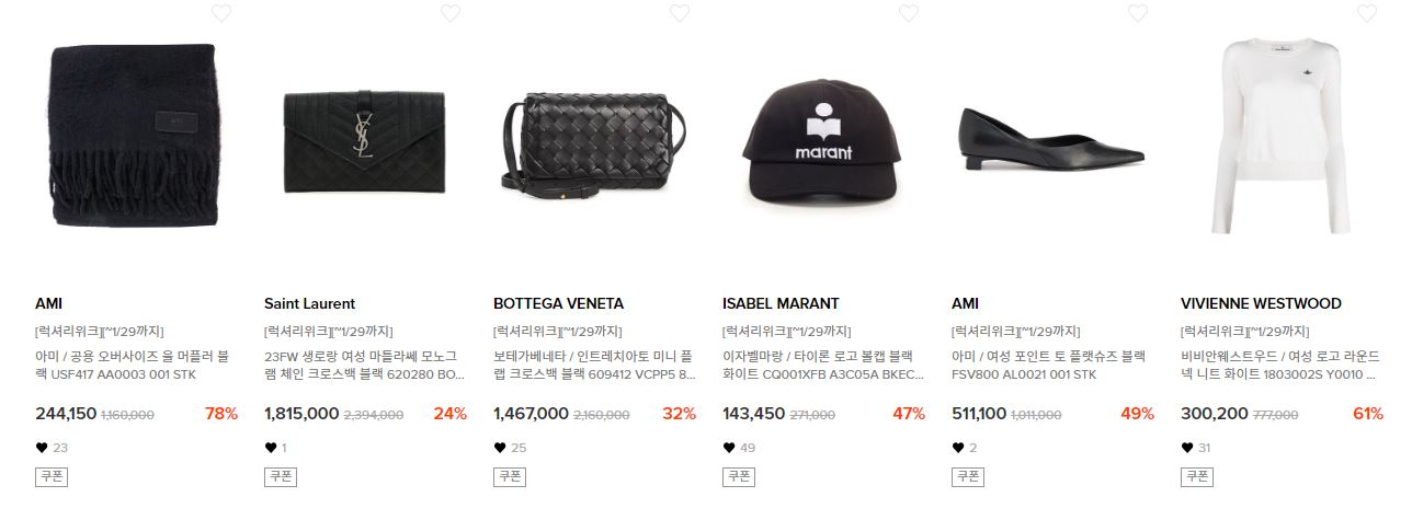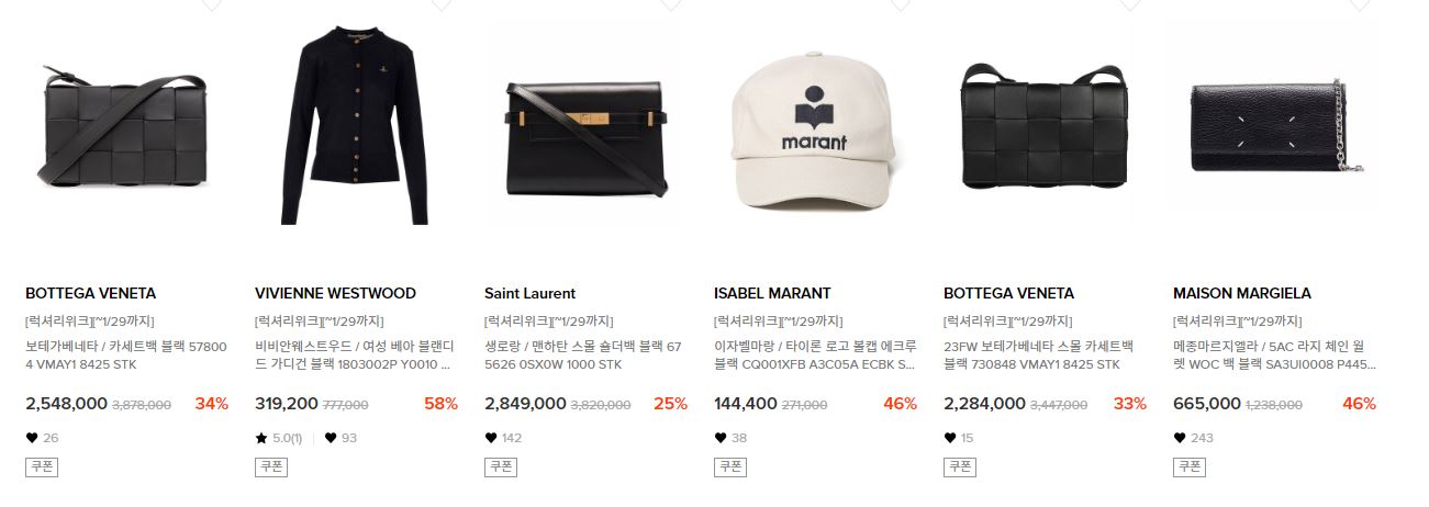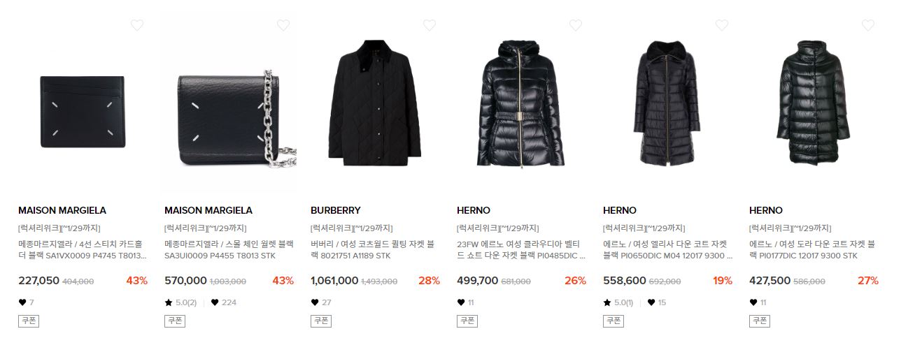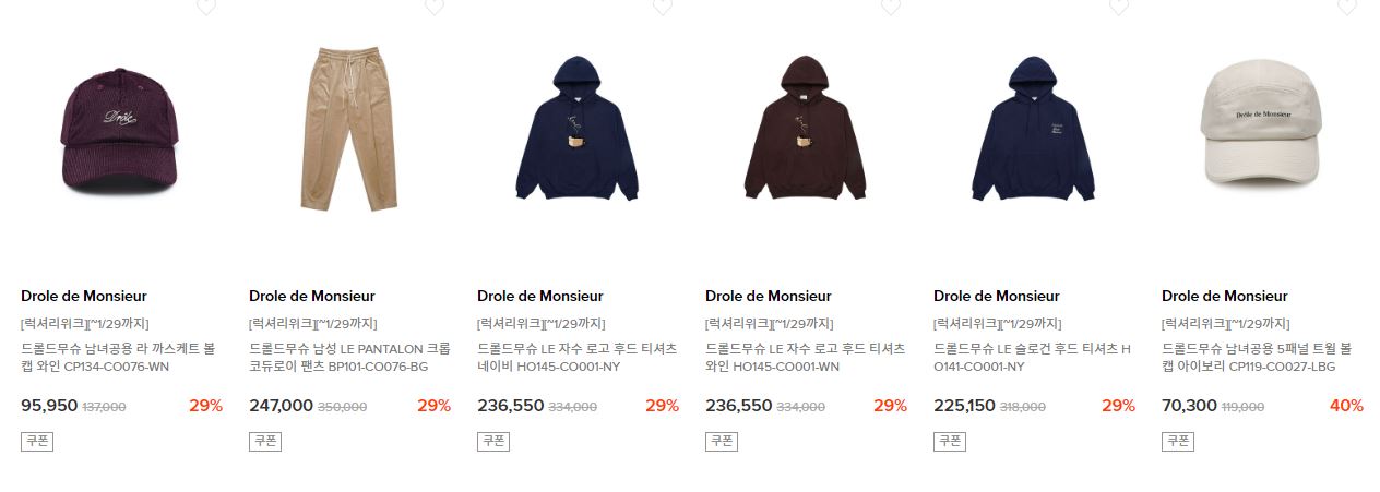 할인 품목 : 의류, 가방, 신발 등