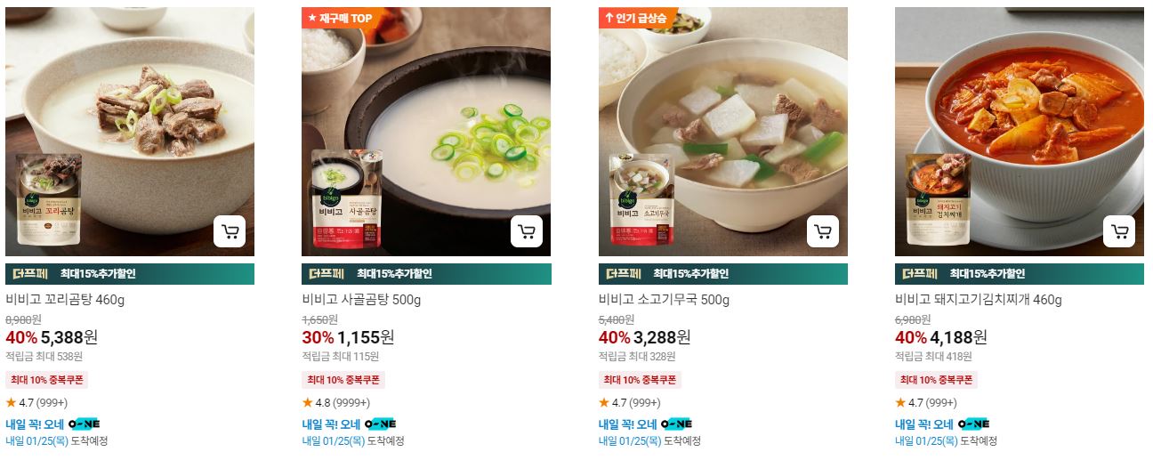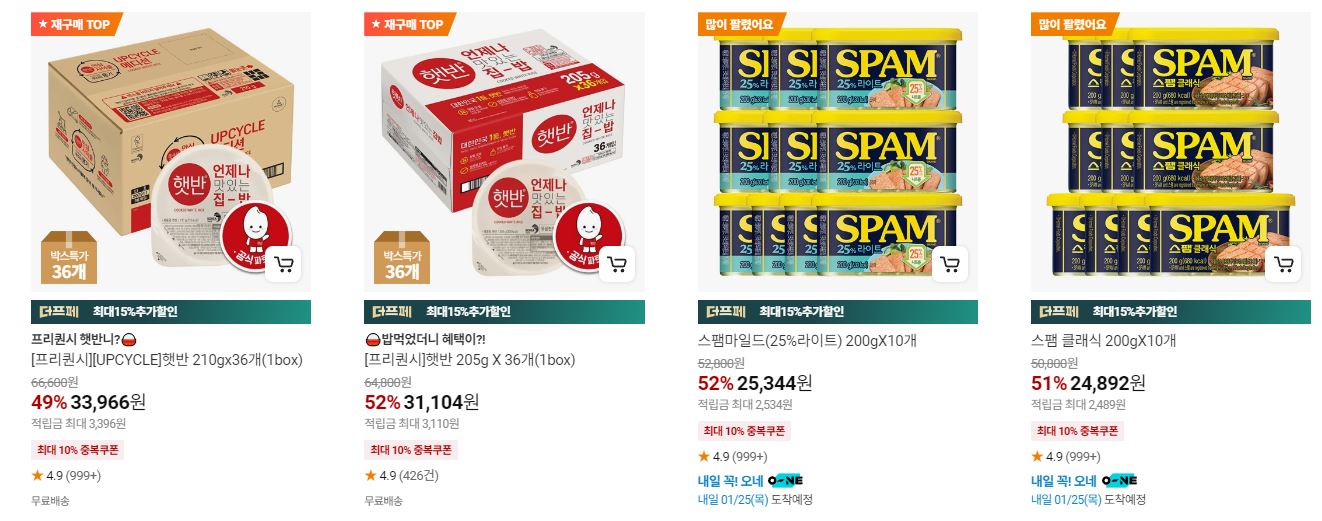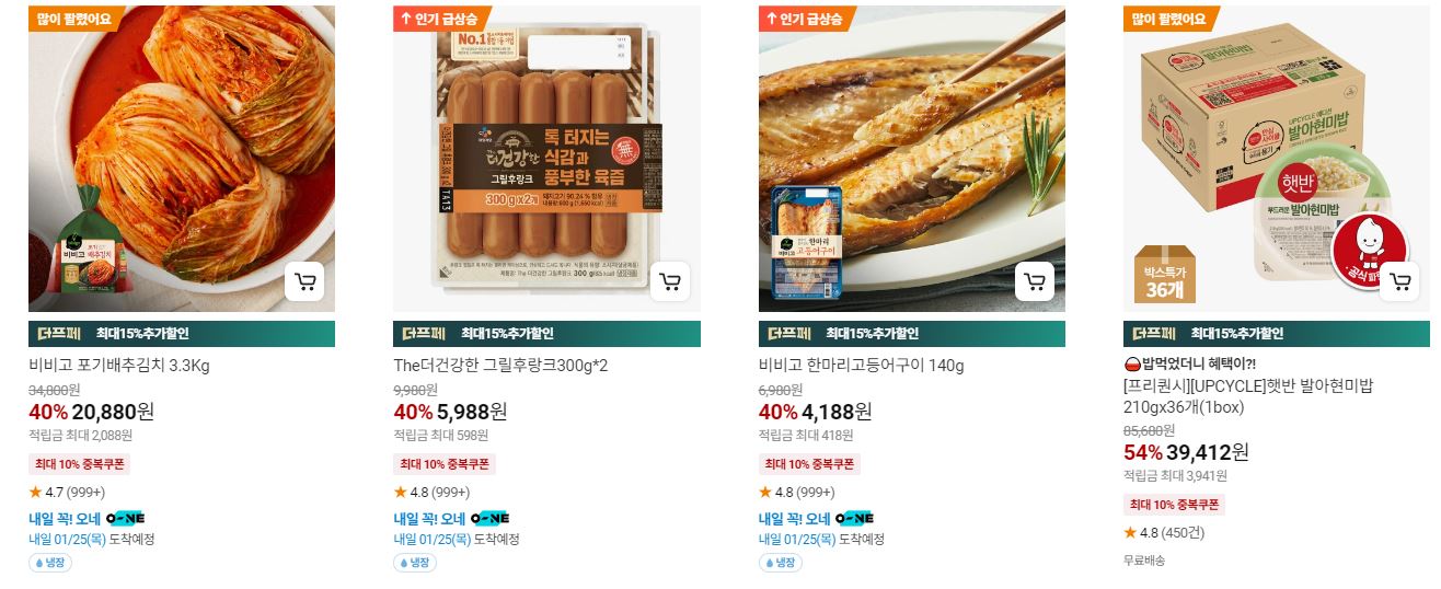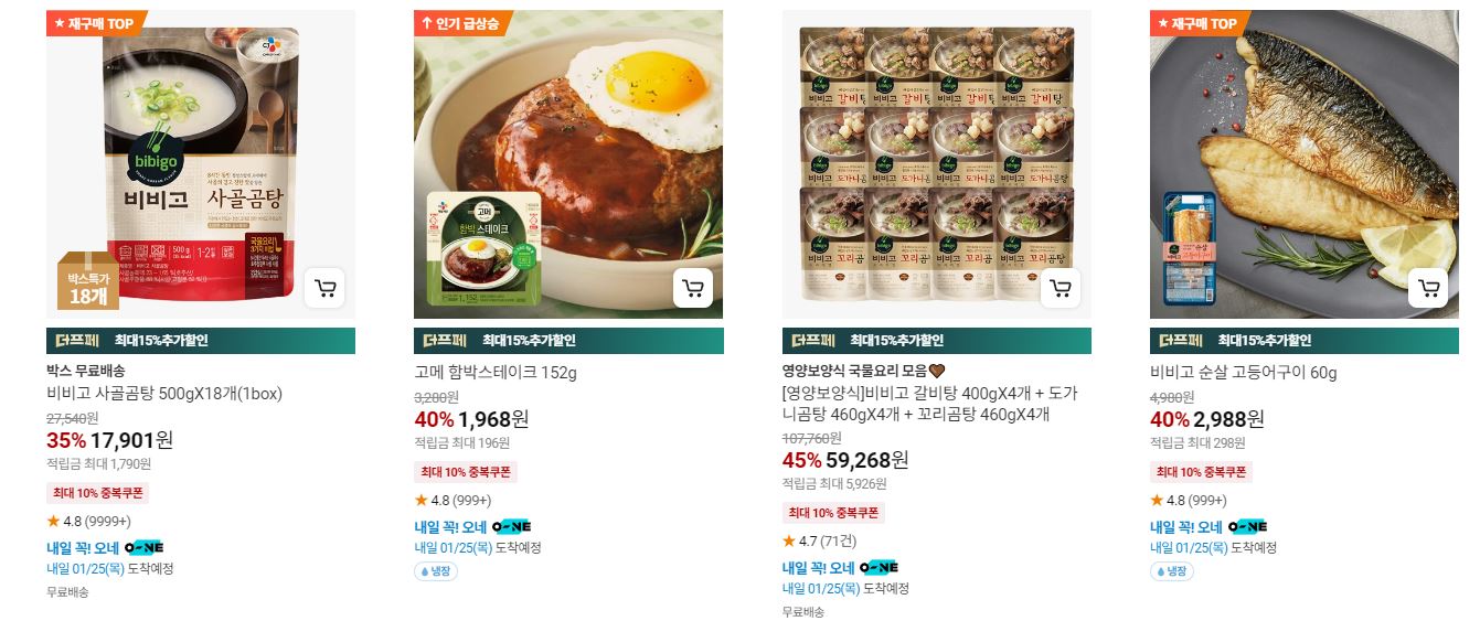 할인 품목 : 햇반, 함박 스테이크 등
