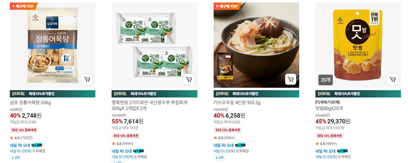 CJ더마켓 다양한 제품을 할인 판매하네요.