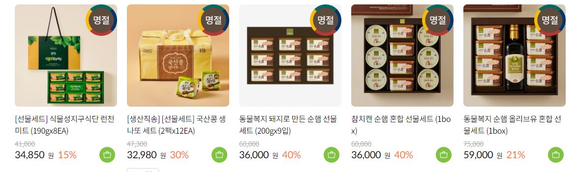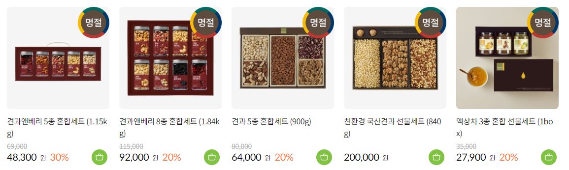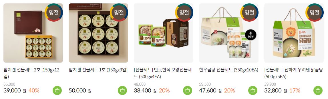 할인 품목 : 참치캔, 견과류 선물세트 등