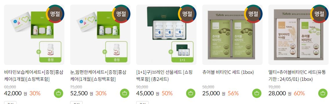할인 품목 : 참치캔, 견과류 선물세트 등