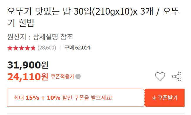 오뚜기 맛있는 밥 210g 30개 할인 정보 포스팅입니다.