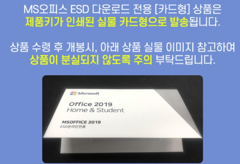 마이크로소프트 오피스2021 홈앤스튜던트 ESD 실물카드을 할인 판매하네요.
