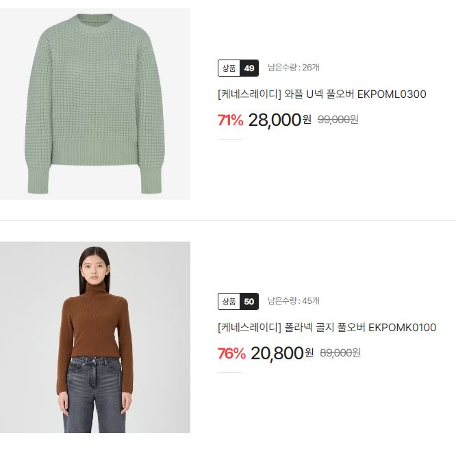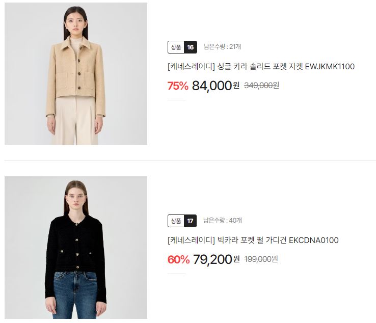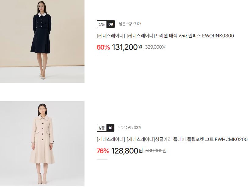 케네스레이디 다양한 제품을 할인 판매하네요.