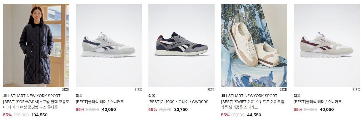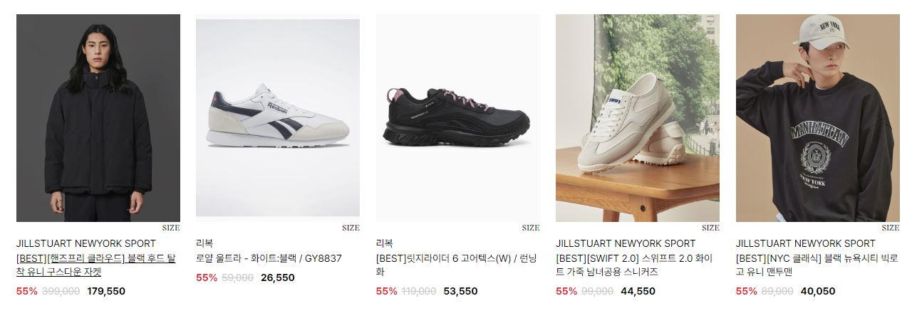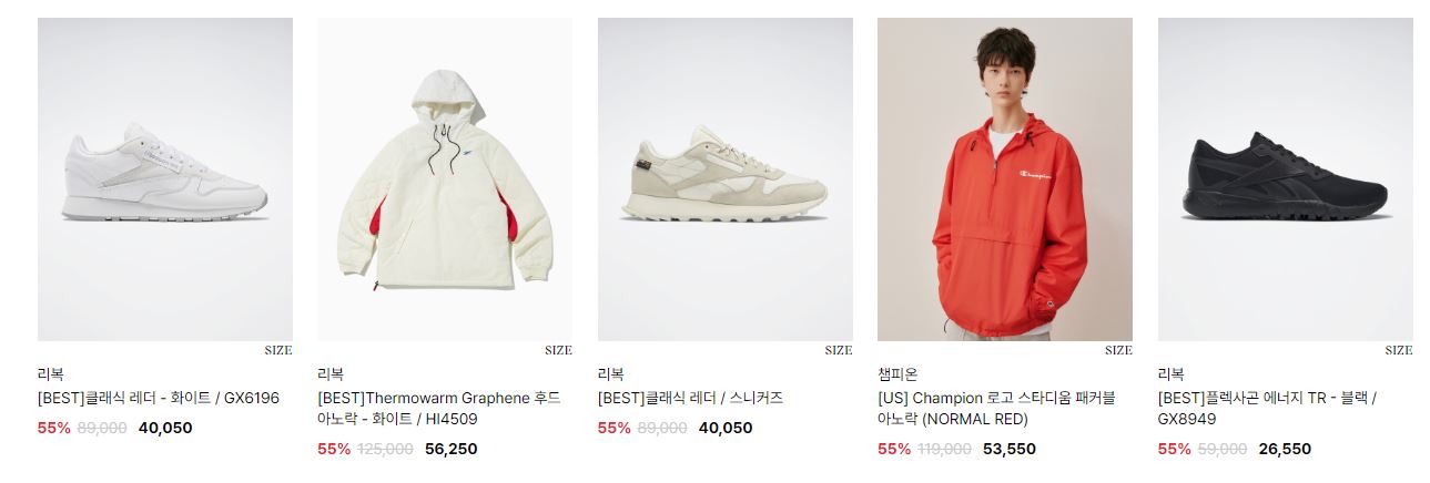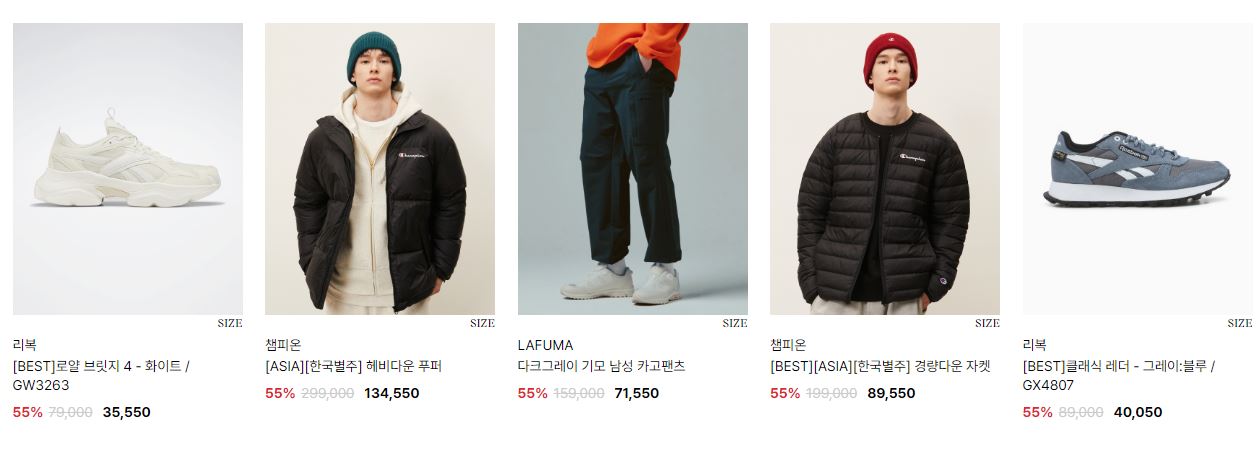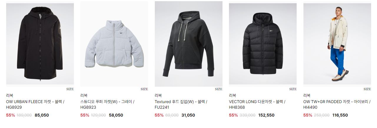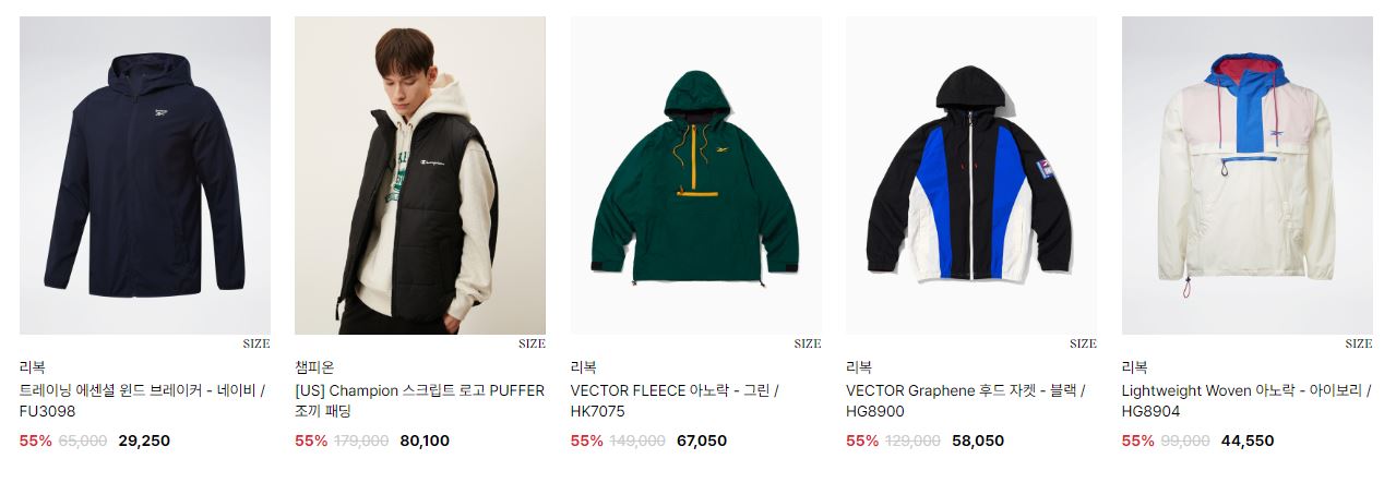 할인 품목 : 점퍼, 운동화, 후드티 등