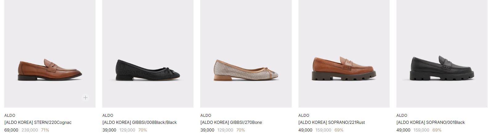 알도 다양한 제품을 할인 판매하네요.