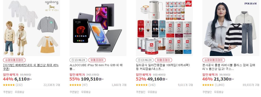 위메프 다양한 제품을 할인 판매하네요.