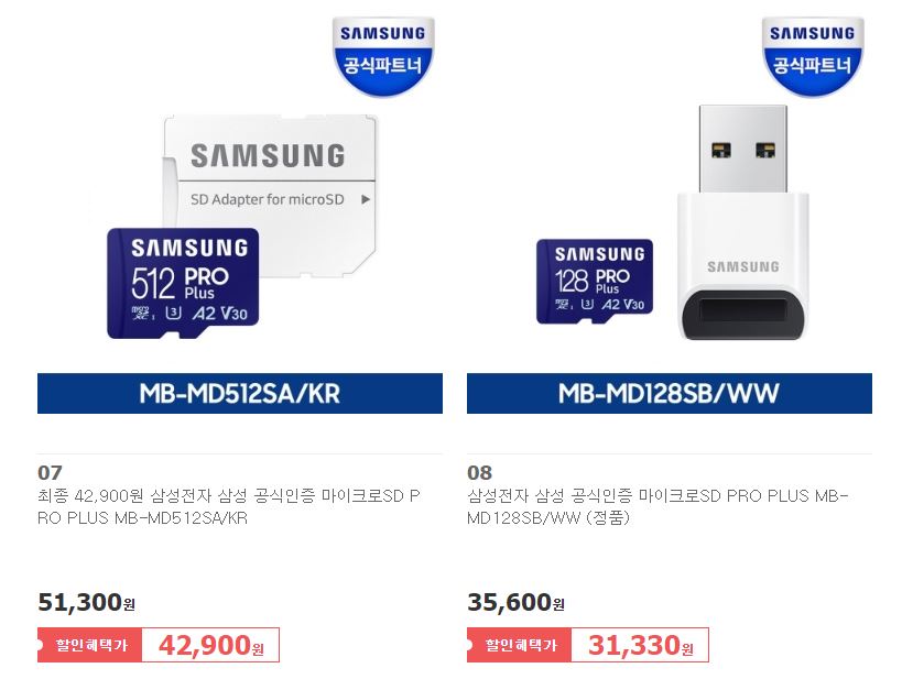삼성 마이크로 SD카드 모음전 할인 정보 [링크]