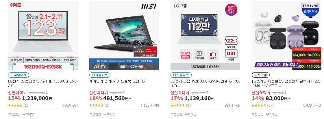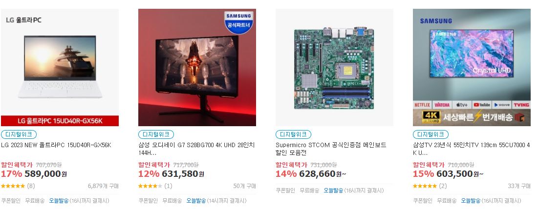 할인 품목 : 노트북, 모니터 등