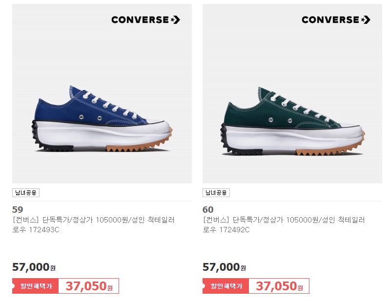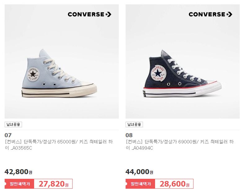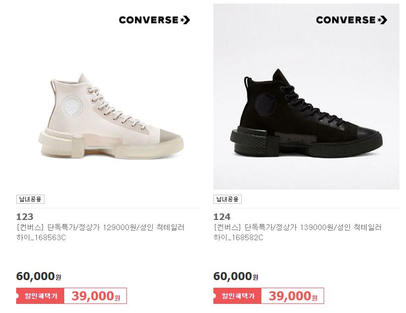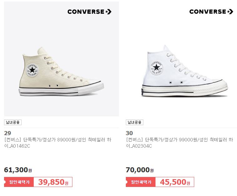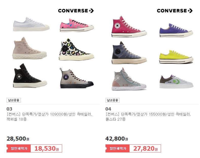 컨버스 다양한 제품을 할인 판매하네요.