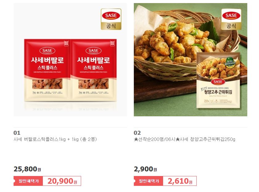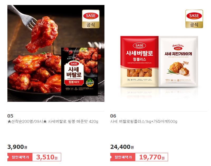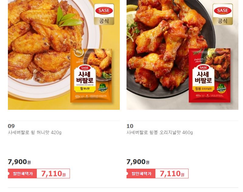 할인 품목 : 버팔로윙, 새우튀김 등