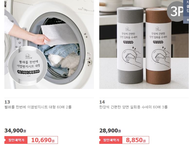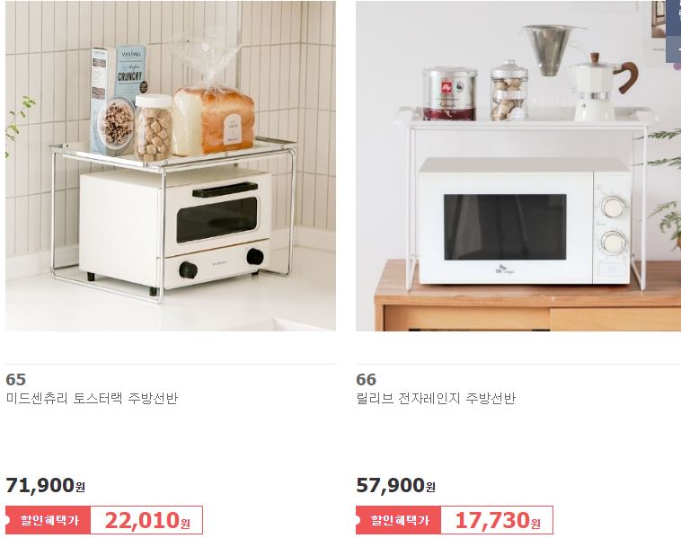 할인 품목 : 빨래바구니, 선반 등