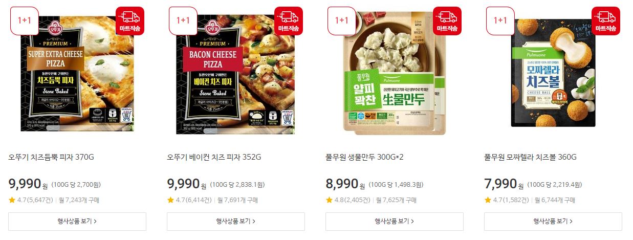 할인 품목 : 만두, 우유 등