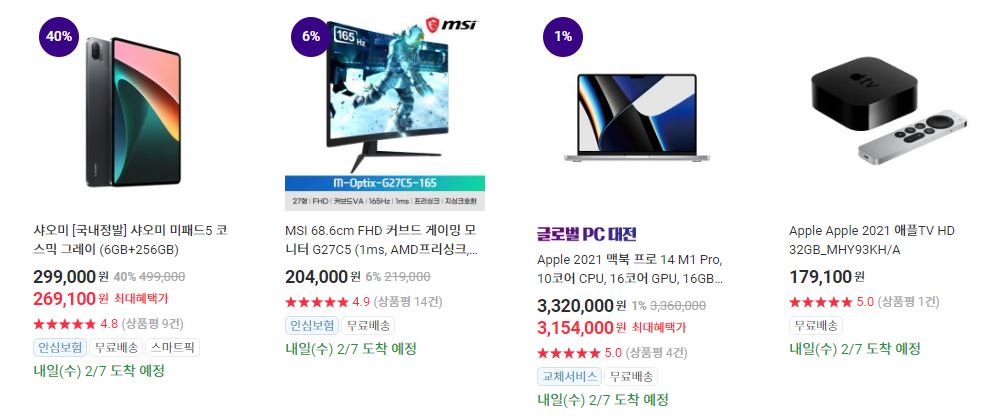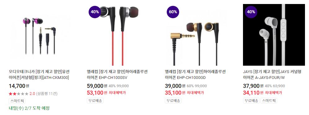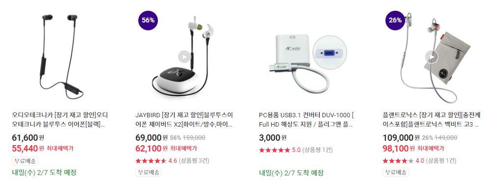 할인 품목 : 이어폰, 모니터 등