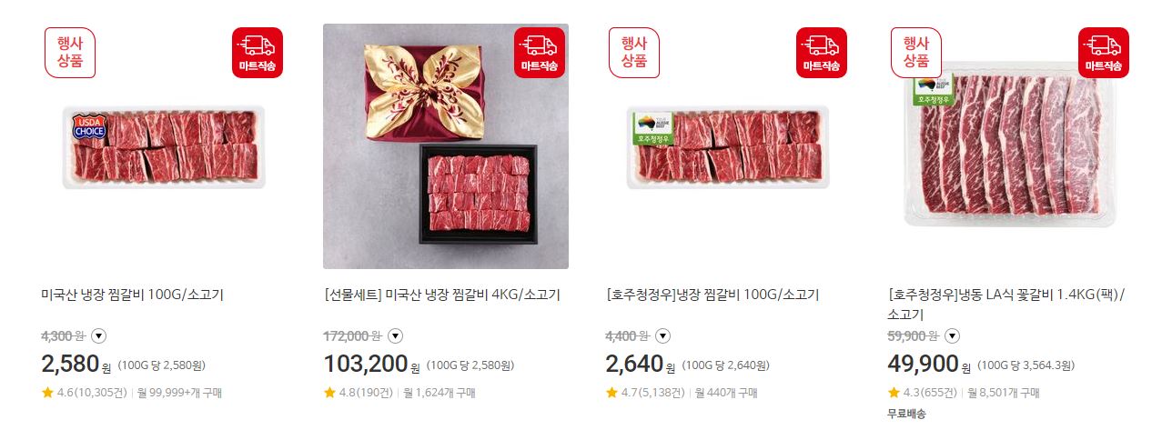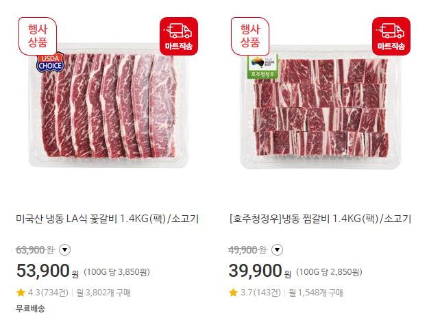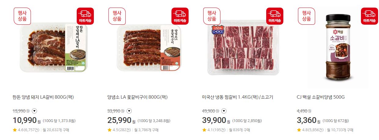 할인 품목 : 찜갈비, 꽃갈비 등