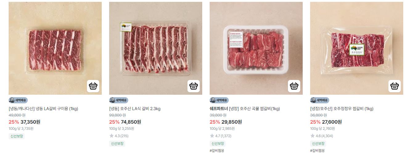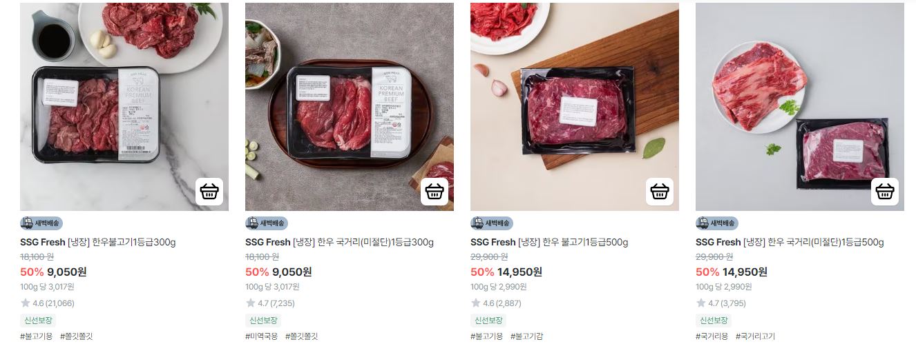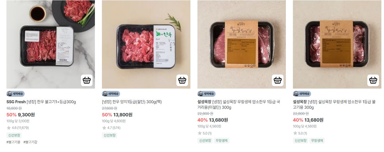 할인 품목 : 한우, 새우 등